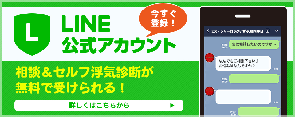 ミス・シャーロックいずみ. 福岡春日では、お見積り時に調査内容や料金のご説明をさせて頂き、十分に納得していただいた上でご依頼をお受けしております。ご依頼者様のご承諾やご要望がなく、調査に取りかかる事はございませんのでご安心ください。